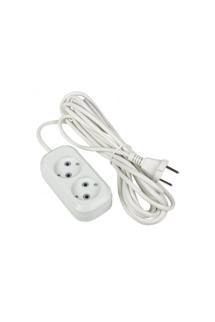 Удлинитель на 2 розетки, 2 метра, без заземления, 10А, отлично подходит для бытовой и строительной техники, экономит место и удобен в использовании.