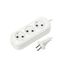 Номинальное напряжение: 250 В; Частота: 50 Гц; Номинальный ток: 6 А; Тип провода: ШВВП 2x0,75мм2; Материал корпуса: АБС-пластик; Климатическое исполнение: УХЛ-3; Степень защиты от влаги и пыли: IP-20; Цвет: белый. Удлинитель на 3 гнезда, 1,5 м, 6А, без заземления, провод ШВВП 2x0,75 мм² — идеален для подключения маломощных приборов и электроинструментов.