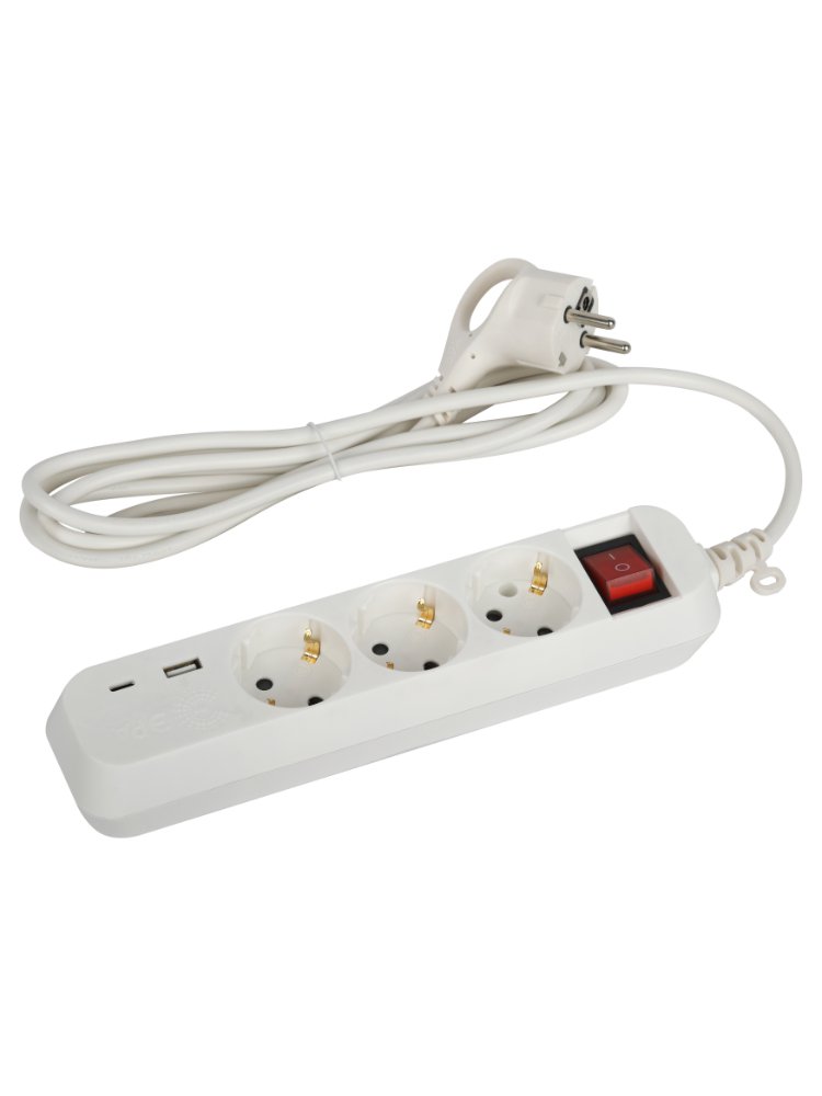Для профессионалов и домашнего мастера: удлинитель на 3 розетки с заземлением, выключателем, портами USB и Type-C – идеальное решение для подключения электроинструментов, бытовой техники и гаджетов на стройке, в мастерской, офисе или дома.