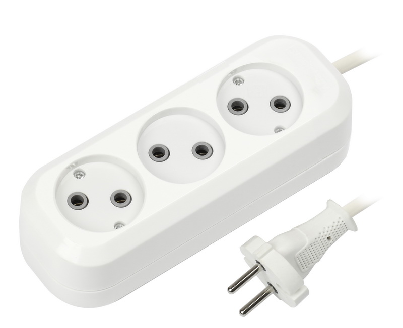 Номинальное напряжение: 250 В; Частота: 50 Гц; Номинальный ток: 6 А; Тип провода: ШВВП 2x0,75мм2; Материал корпуса: АБС-пластик; Климатическое исполнение: УХЛ-3; Степень защиты от влаги и пыли: IP-20; Цвет: белый. Практичный удлинитель на 3 розетки, 3 м, 6А, без заземления, для безопасного и удобного подключения техники и электроинструментов.