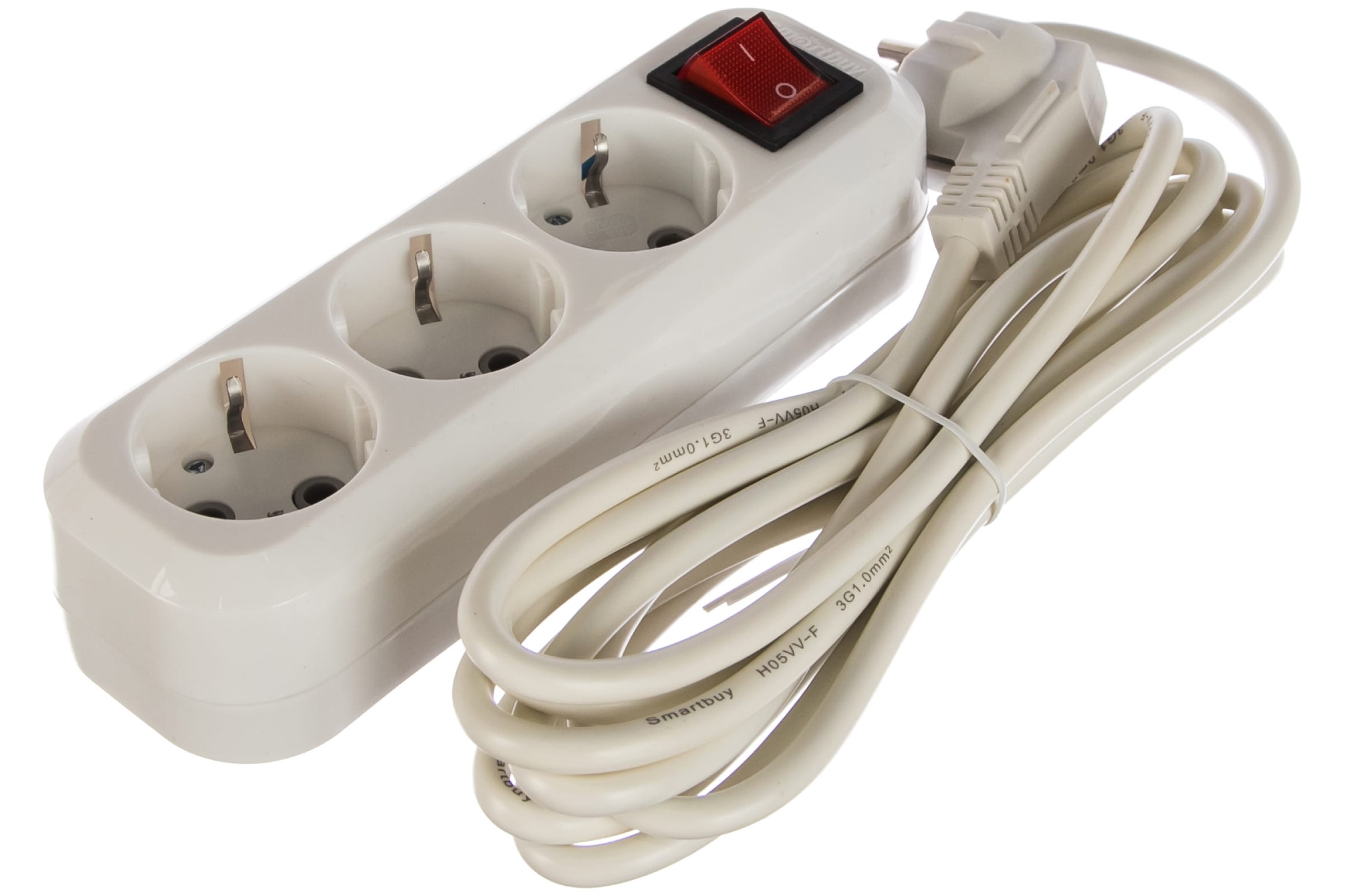 Удлинитель 3 гнезда 3м с з/к с выкл. 16А 3х1 ПВС Smartbuy
