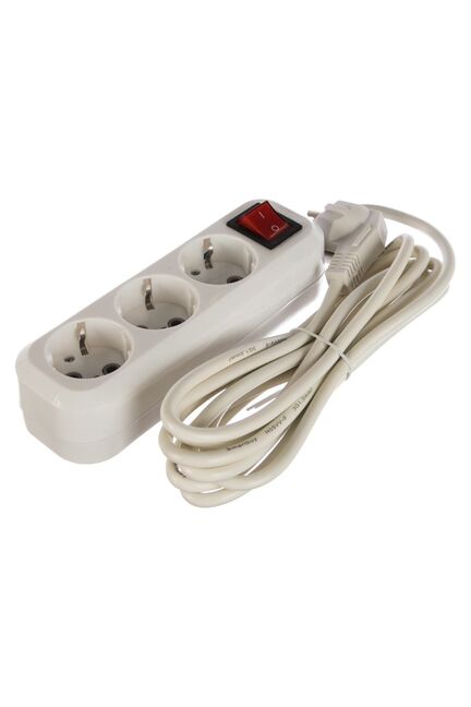 Номинальное напряжение: 250 В; Частота: 50 Гц; Номинальный ток: 16 А; Тип провода: ПВС 3x1,0мм2; Материал корпуса: АБС-пластик; Климатическое исполнение: УХЛ-3; Степень защиты от влаги и пыли: IP-20; Цвет: белый. 3 розетки с заземлением, кабель 3 м, выключатель, ток до 16А. Надежный и безопасный удлинитель для работы с электроприборами и инструментами.