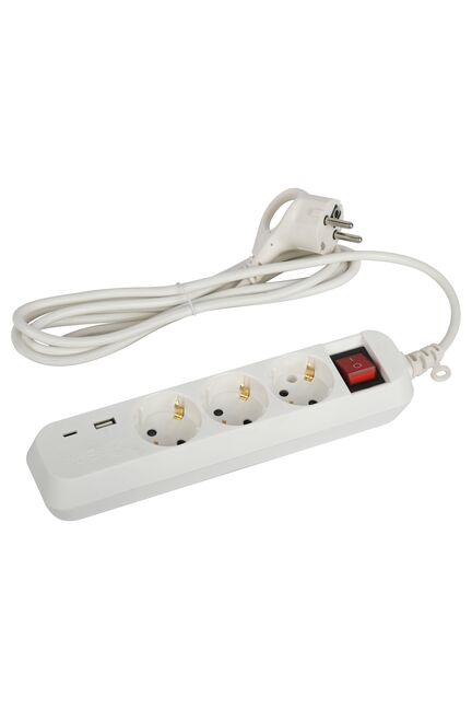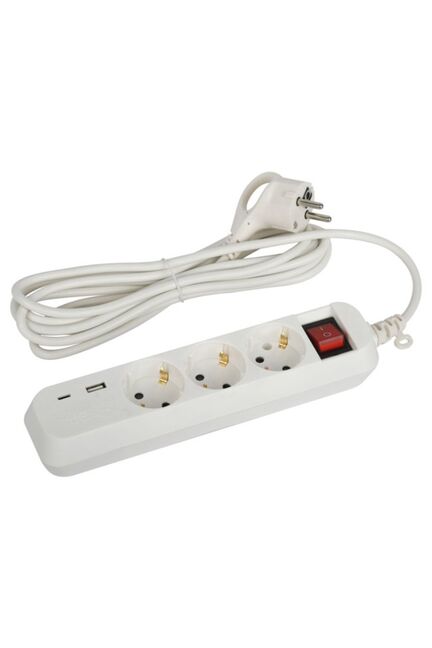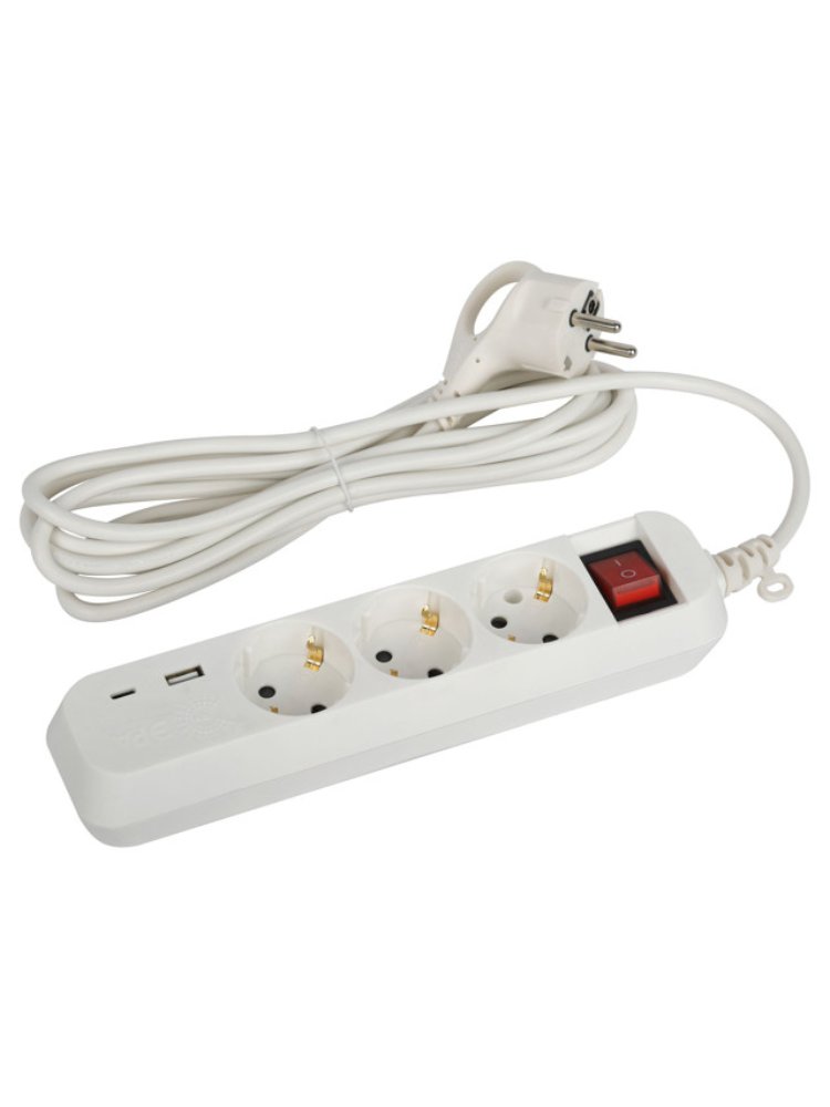 Удлинитель 3 гнезда 3м с з/к выкл. 10А 1 USB, 1 TypeC 3х0,75 ПВС белый ЭРА