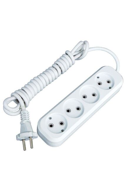 Компактный удлинитель на 4 гнезда с проводом 2 м, ток 10А, провод ПВС 2х1 мм² — идеален для подключения техники в доме и на работе.