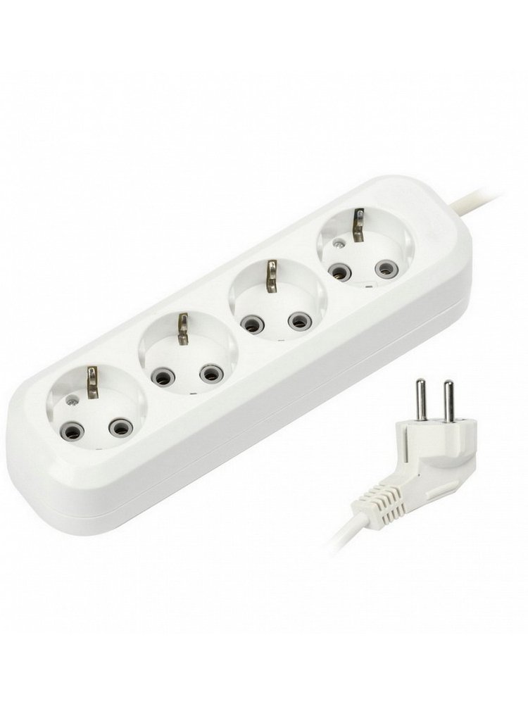 4 гнезда с заземлением, длина кабеля 2 м, мощность до 16 А, надежное соединение и защита для инструментов, бытовой и строительной техники.