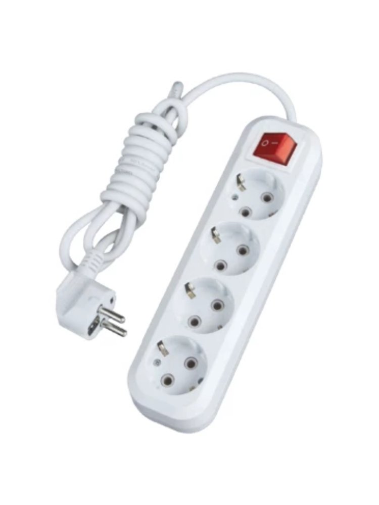 Надёжное решение для подключения электроинструментов, бытовых и офисных приборов — универсальный удлинитель с четырьмя розетками, заземлением, кнопкой выключателя и длиной кабеля 2 метра. Идеальный выбор для строительных площадок, ремонтных работ или размещения в доме и офисе благодаря высокой мощности 16А и медному проводу сечением 3х1 мм².