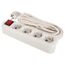 Номинальное напряжение: 250 В; Частота: 50 Гц; Номинальный ток: 16 А; Тип провода: ПВС 3x1,0мм2; Материал корпуса: АБС-пластик; Климатическое исполнение: УХЛ-3; Степень защиты от влаги и пыли: IP-20; Цвет: белый. Удлинитель 4 гнезда, 5 м, с заземлением и мощным ПВС-кабелем 3х1 мм², выдерживает до 16А — идеален для инструмента и техники любого типа.