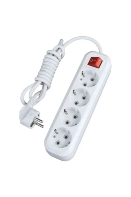 4 розетки с заземлением, выключатель, 5 м, медный кабель 3×1 мм², нагрузка до 16А. Для безопасного подключения мощных приборов.