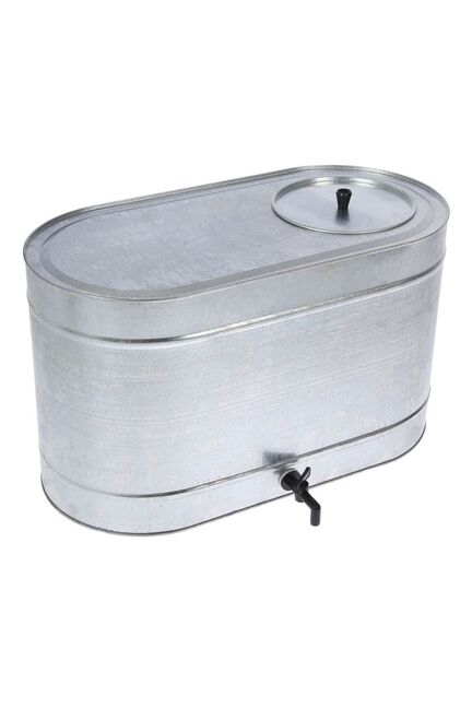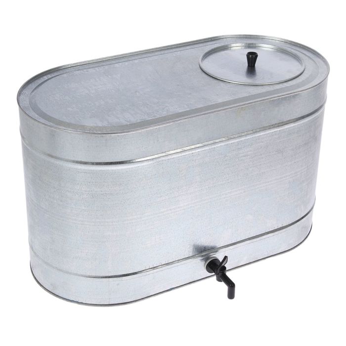 Овальный оцинкованный бак с краном, 75 л — для хранения воды, устойчив к ржавчине, удобен в быту и на стройке, легко наполнять и очищать.