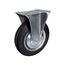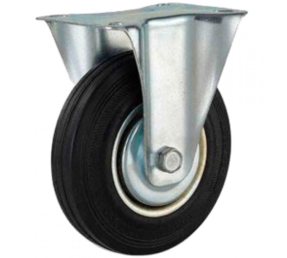 Колеса промышленные неповоротные состоят из колеса (обод – металл, шинка – черная резина) и фиксированной опоры с площадочным креплением. Отличительная особенность – прямолинейная траектория движения. Температурные условия: от -20° до + 60°. Рабочая среда: помещение и открытый воздух. Основные сильные стороны: простота механизма; долговечность; широкая распространенность, обеспечивающая доступность замены. Фиксированные колесные опоры применяются в складской, строительной, бытовой и других сферах в качестве устройств передвижения. Используются для складских тележек, платформенных тележек, мусорных баков небольшой емкости, для строительных лесов, стеллажей, железной мебели. Колёсная опора 100 мм, нагрузка до 70 кг, крепкий корпус, плавный ход. Идеальный выбор для перемещения оборудования и производственной мебели.