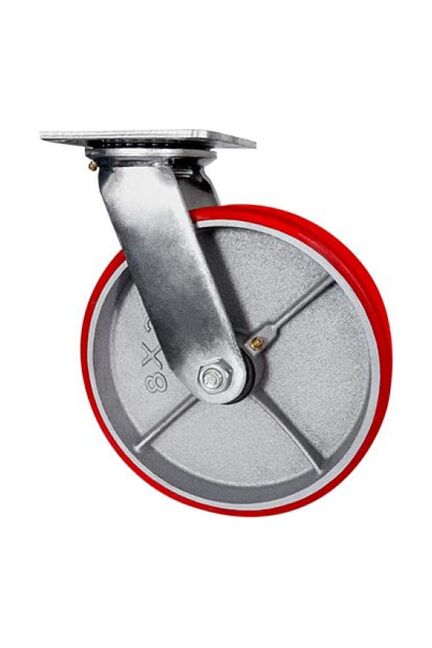 Применяется для установки на тачки и тележки для транспортировки тяжелых и объемных грузов. Колесная опора отлично адаптирована к эксплуатированию в помещениях и на грубой уличной поверхности. Полиуретан, нанесенный на обод, справляется с различными воздействиями внешней среды, в том числе и химическими. Основа обода полиуретанового колеса большегрузной опоры изготовлена из надежного чугуна. Колесо без кронштейна оснащается двухрядным шарикоподшипником и пресс-масленкой, которая обеспечивает своевременное смазывание. В качестве крепления использован кронштейн, который выполнен из специальной стали с оцинковкой. Заводской температурный режим для данной серии варьируется между -35С° и +50С°. Устанавливаются на складские телеги и оборудование для работы внутри склада, по бетонному полу. Покрытие жесткое, катаются в основном по ровной бетонной поверхности. Грузоподъемность до 460 кг, вращение 360°, диаметр 200 мм, плавный ход, прочность и устойчивость к износу для строительного оборудования.