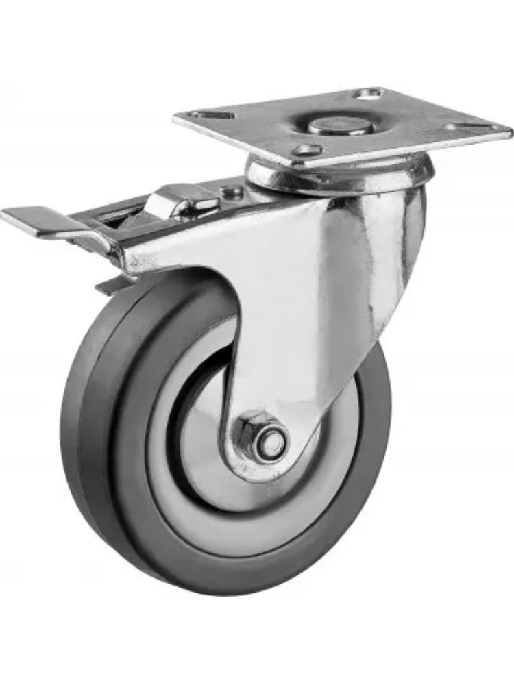 Удобное передвижение оборудования и мебели на стройке или в мастерской обеспечит прочная колесная опора 75 мм с поворотным механизмом и тормозом — идеальное решение для динамичных задач и мобильных конструкций.