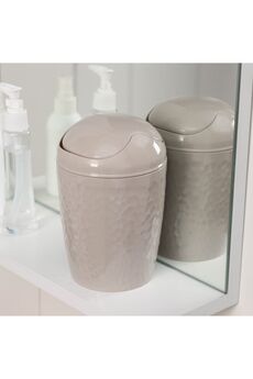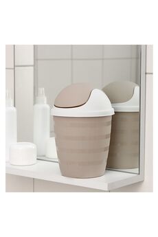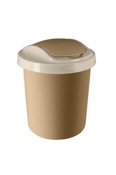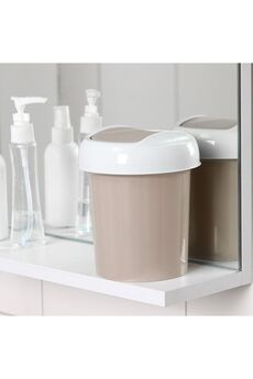 Настольный контейнер 1 л из прочного пластика с крышкой, компактный, светло-бежевый, подходит для мелкого мусора в мастерской или офисе.