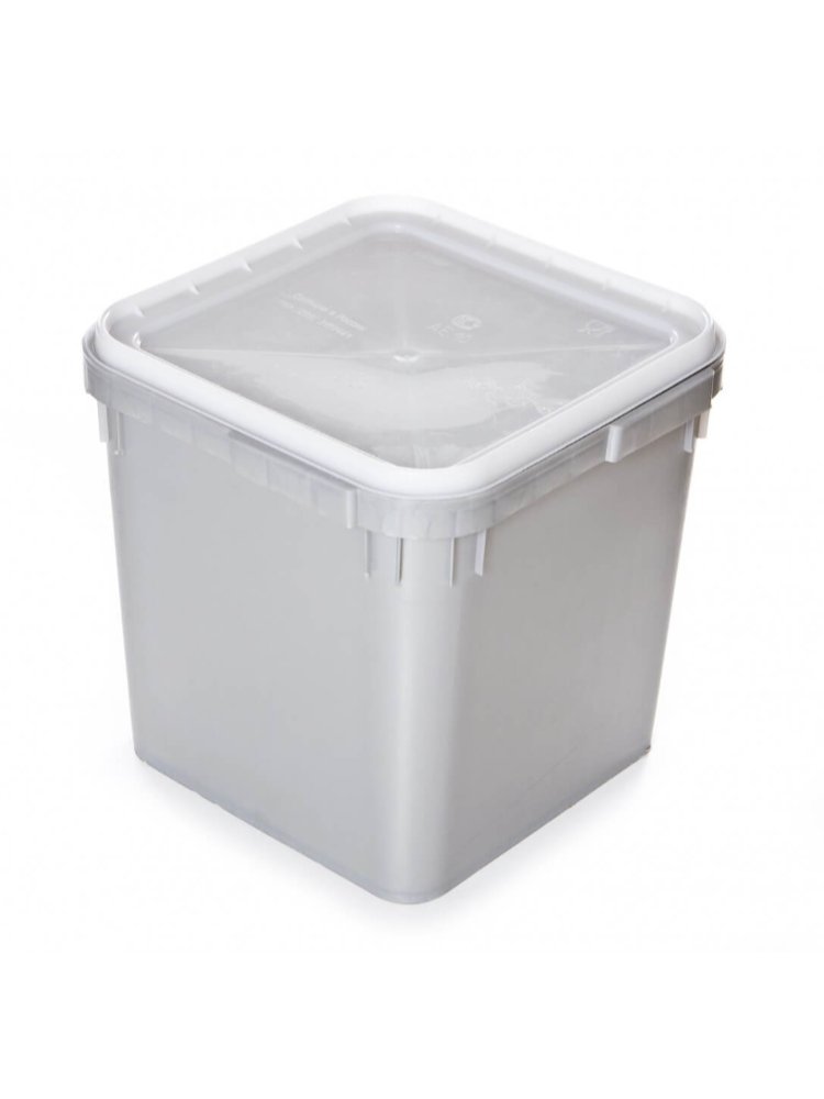 Пластиковый куботейнер, ёмкость 23 л с герметичной крышкой: устойчив к химикатам, удобный для хранения и перевозки стройматериалов и жидкостей.
