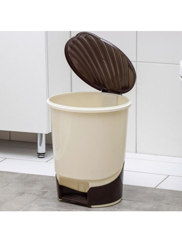 Ведро д/мусора с педалью 10л, бежевый/коричневый 6628635 в Комсомольск-на-Амуре