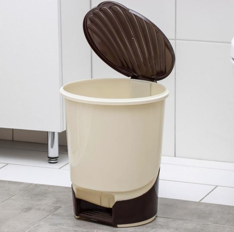 Ведро д/мусора с педалью 10л, бежевый/коричневый 6628635 в Комсомольск-на-Амуре