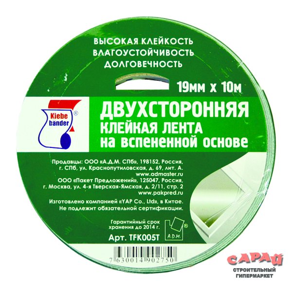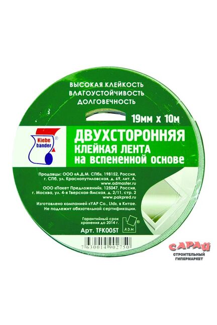 Лента двусторонняя 19мм*10м клейкая на вспененной основе Klebebander