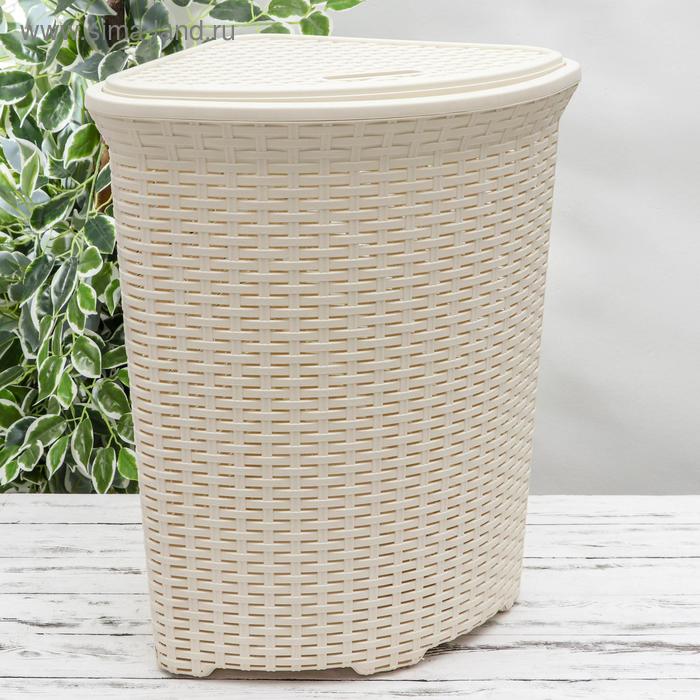Корзина д/белья 60л "Ротанг" угловая с крышкой, слоновая кость 5301724 в Комсомольск-на-Амуре