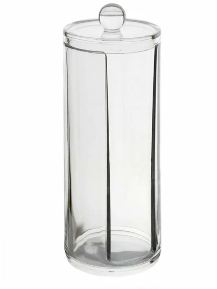 Размер: 7*7*20 см Компактный прозрачный органайзер: удобно хранит ватные диски, обеспечивая быстрый доступ, чистоту и порядок на рабочем месте или в ванной.