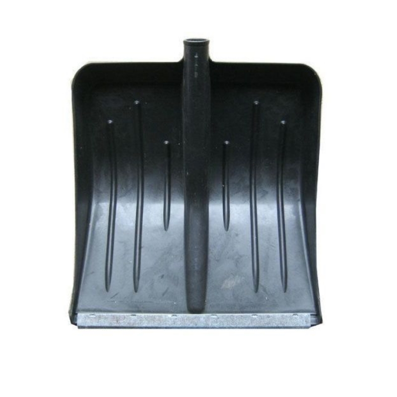 Легкая и прочная пластиковая лопата 430×440 мм с обрезиненной кромкой — для уборки снега и строительных работ, устойчива к износу.