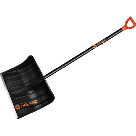 Лопата из морозо и ударо прочного пластика FINLAND 500*390мм. Деревянный, окрашенный, лакированный черенок высшего сорта. Аллюминева окантовка рабочей кромки, D-ручка Легкая ударопрочная лопата 500 мм с деревянным черенком и D-рукояткой для эффективной уборки снега и строительных работ.