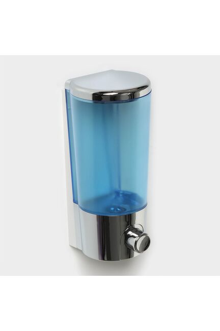 Настенный дозатор объёмом 500 мл в хромированном корпусе, компактный, прост в установке и обслуживании, подходит для дома и общественных помещений.