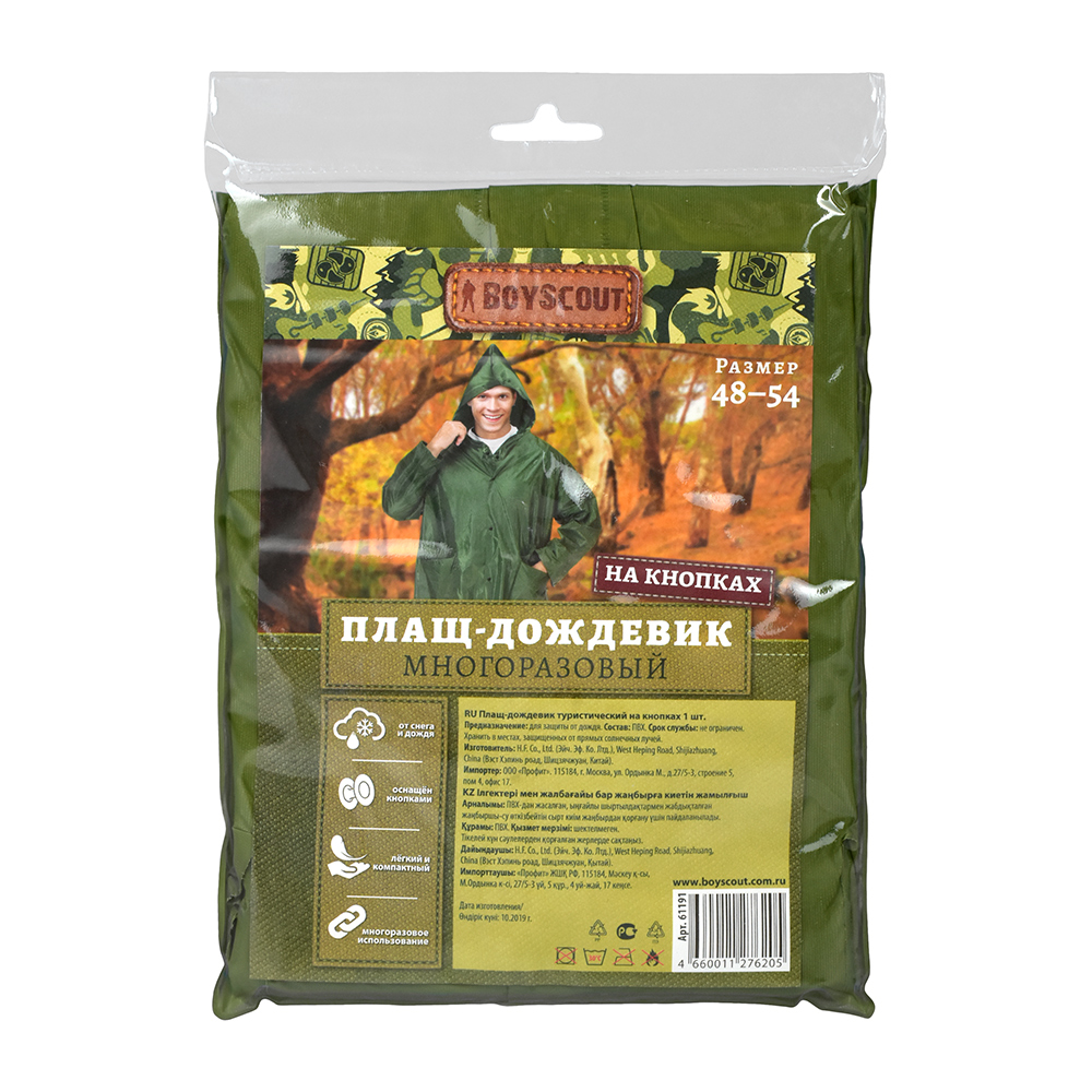 Дождевик ПВХ многоразовый на кнопках (размер 48-54, М-L) BOYSCOUT в Комсомольск-на-Амуре