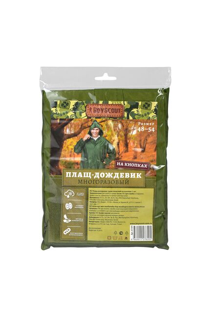 Дождевик ПВХ многоразовый на кнопках (размер 48-54, М-L) BOYSCOUT