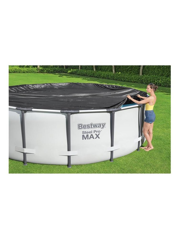 Плотный тент 305 см для защиты воды в бассейне от мусора, ультрафиолета и испарения. Лёгкая установка и долговечность.