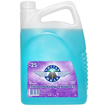 Стеклоомывающая жидкость «Чистая миля» предназначена для чистки ветровых, боковых и задних стекол автомобилей с помощью стеклоомывателя или вручную. Специально разработаны рецептуры совместно с ведущей Европейской компанией по выпуску ароматизирующих отдушек для придания жидкостям приятного аромата. Продукция прошла испытания в аккредитованной лаборатории ООО «Хроминвест» на чистящую способность.