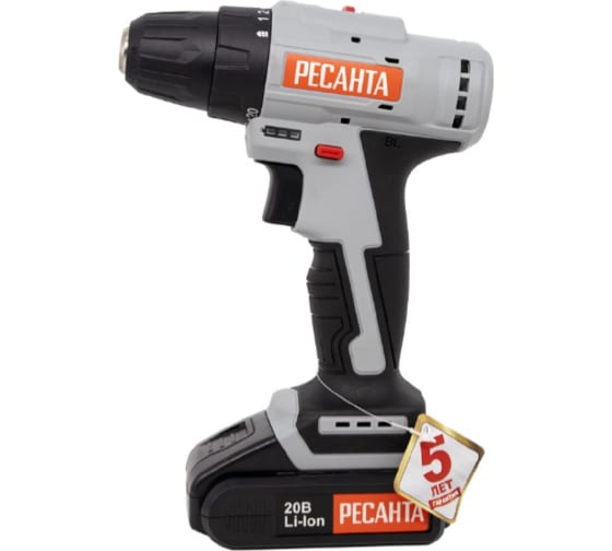 Дрель-шуруповерт акк. РЕСАНТА ДА-20-2ЛК-Б, 20В, Li-lon, 2*2 Ач, бесщеточная, кейс