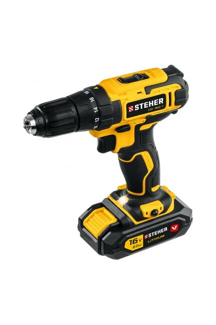 Дрель-шуруповерт STEHER 16В, 1 АКБ 2Ач CD-160-1 применяется для сверления отверстий в различных материалах и для монтажа или демонтажа резьбовых соединений. Быстрозажимной патрон позволяет легко заменить оснастку без использования инструмента. Благодаря наличию 18+1 положений крутящего момента можно регулировать максимальный момент затяжки крепежных изделий в зависимости от вида работ и применяемых материалов. Аккумуляторная технология избавляет пользователя от необходимости следить за шнуром питания.