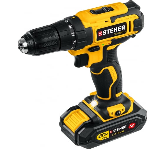 Дрель-шуруповерт STEHER 20В, 1 АКБ 2Ач CD-200-1 применяется для сверления отверстий в различных материалах и для монтажа или демонтажа резьбовых соединений. Благодаря наличию 18+1 положений крутящего момента можно регулировать максимальный момент затяжки крепежных изделий в зависимости от вида работ и применяемых материалов. Быстрозажимной патрон позволяет легко заменить оснастку без использования инструмента. Подсветка рабочей зоны упрощает выполнение процессов в условиях недостаточной освещенности.