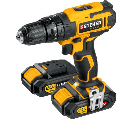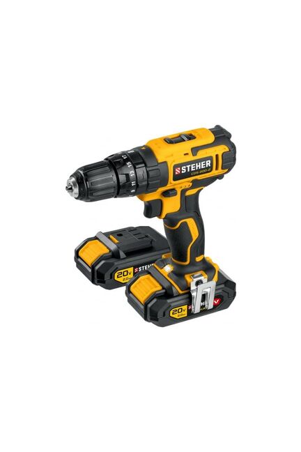 Ударная дрель-шуруповерт STEHER 20В, 2 АКБ 2Ач CDS-200-2 предназначена для сверления (в том числе ударного) отверстий в различных материалах, а также для монтажа, демонтажа резьбовых соединений. Функция блокировки шпинделя обеспечивает удобную замену инструмента в патроне. Регулировка частоты вращения помогает оптимально настроить дрель в зависимости от вида работ. Для продолжительных работ без простоев в комплекте предусмотрено два аккумулятора.
