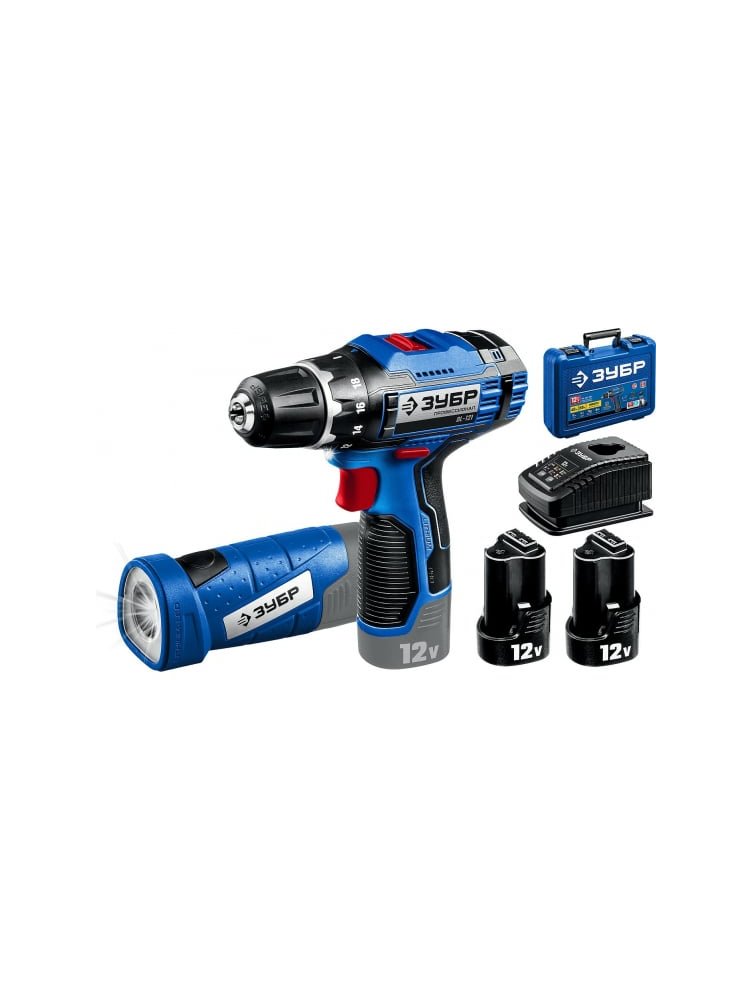 Дрель-шуруповерт акк. ЗУБР DL-121-22F, 12В, 2*2Ач, Li-Ion, LED фонарь, кейс