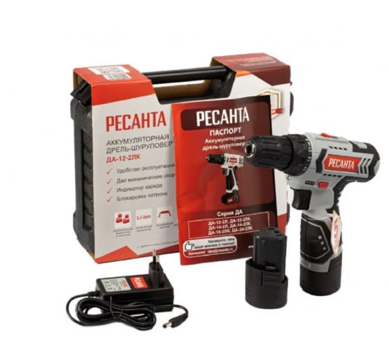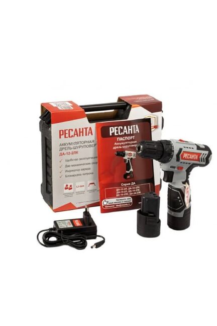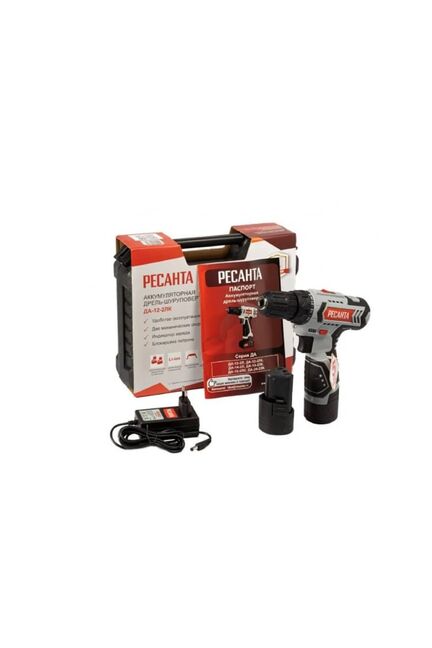 Шуруповерт акк. РЕСАНТА ДА-12-2ЛК, 12В Li-Ion, 2*2,0 А*ч, кейс