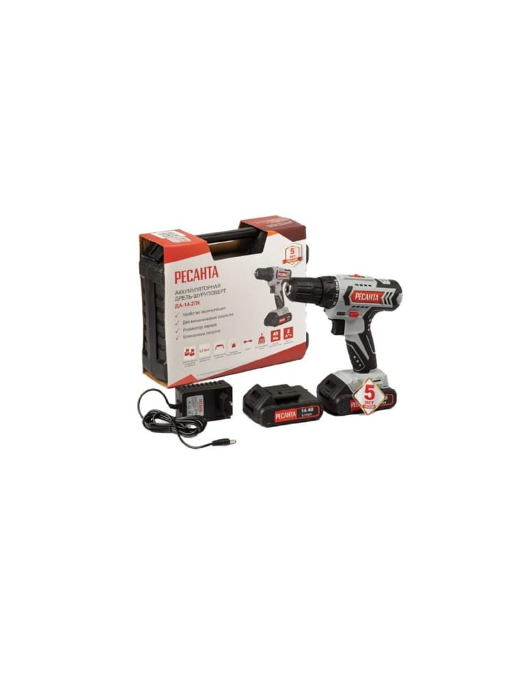 Шуруповерт акк. РЕСАНТА ДА-14-2Л, 14В Li-Ion, 2,0 А*ч