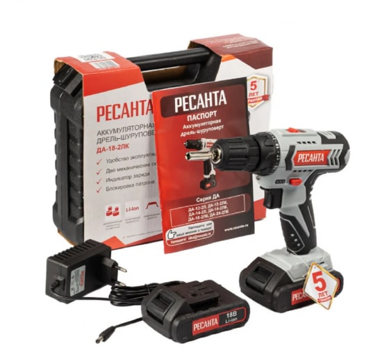 Аккумуляторная дрель-шуруповерт Ресанта ДА-18-2ЛК 75/14/5 позволяет сверлить отверстия в различных материалах, что увеличивает спектр работ. Смена рабочих насадок производится мгновенно, без излишних усилий благодаря быстрозажимному патрону. Питание инструмента осуществляется от съемной литий-ионной аккумуляторной батареи. Она не имеет эффекта памяти и саморазряда. Такой аккумулятор удобен в использовании.
