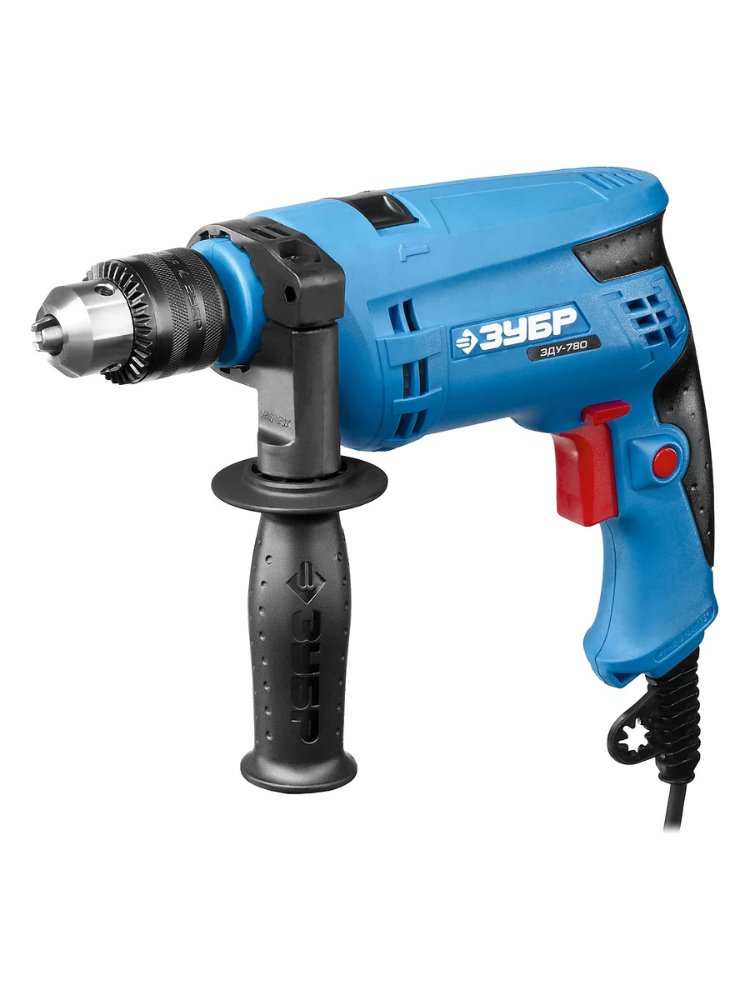 Ударная дрель Зубр отлично сверлит отверстия в различных материалах - дереве, металле, кирпиче и даже бетоне. В режиме сверления с ударом  дрель эффективно справляется с твердыми стенами и прочными конструкциями. Плавный запуск страхует от увода сверла во время начала сверления и позволяет плавно наращивать обороты. Во время работы скорость вращения сверла регулируется усилием нажатия на пусковую кнопку. Инструмент может использоваться для завинчивания и отвинчивания шурупов при установке соответствующих бит. Мощная дрель 780 Вт с ударным режимом и реверсом, металлический редуктор, регулировка оборотов, кейс. Для металла, дерева, бетона.