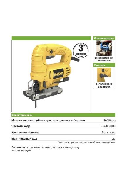Лобзик DEWALT DWE249-KS, 550 Вт, коробка