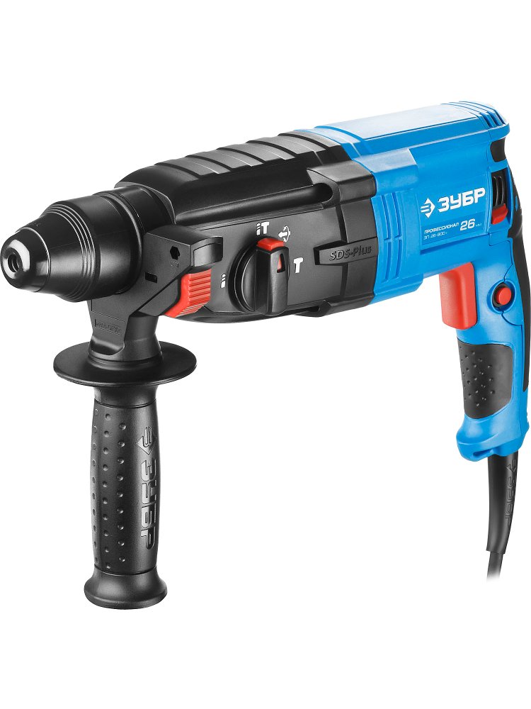 Перфоратор Зубр имеет три режима работы: сверление, сверление с ударом, долбление. Также есть режим поворота долота. Выбор одного из них осуществляется при помощи удобного переключателя. Для крепкого хвата предусмотрена дополнительная рукоять. Модель поставляется в кейсе, что решает вопрос хранения и транспортировки. 3 режима, 800 Вт мощности, SDS-plus, надежный кейс — для бурения и долбления бетона и кирпича в профессиональном строительстве.