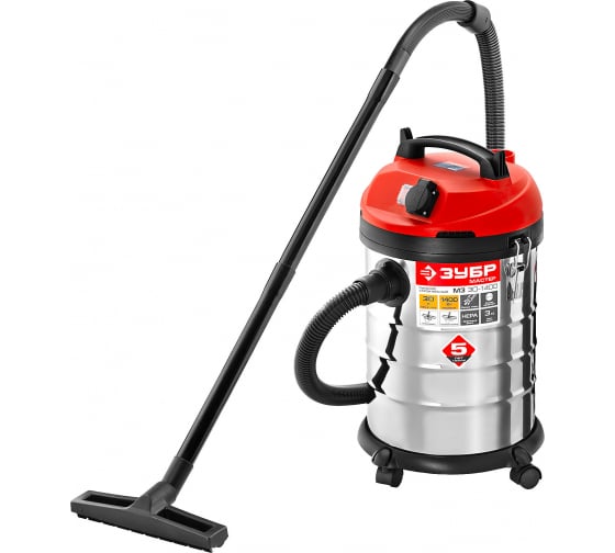 Строительный пылесос ЗУБР МАСТЕР М3-30 ПУ-30-1400 М3 используется для уборки строительных площадок и производственных помещений. Он оснащен встроенной розеткой, к которой можно подключить электроинструмент мощностью до 2000 Вт. Корпус бака выполнен из нержавеющей стали, благодаря чему устойчив к коррозии и имеет долгий срок службы. Функция выдувания позволит избавиться от пыли в труднодоступных местах.