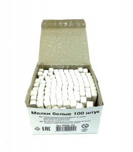 Мел школьный белый средней твердости, в наборе 100 штук. Изготовлен из экологически чистых материалов, без примесей и добавок. Подходит для письма и рисования на различных поверхностях, не оставляет царапин. Оставляет на доске четкую белую линию, легко смывающуюся водой. Размер одной штуки — 7.8×1.4×1.4 см, вес около 12 г. Может использоваться в младших, средних и старших классах школы. Упаковка — картонная коробка. Белый мел-бруски: разметка на любых поверхностях, прочный, экономичное расходование, 100 шт в упаковке, не пачкает руки.