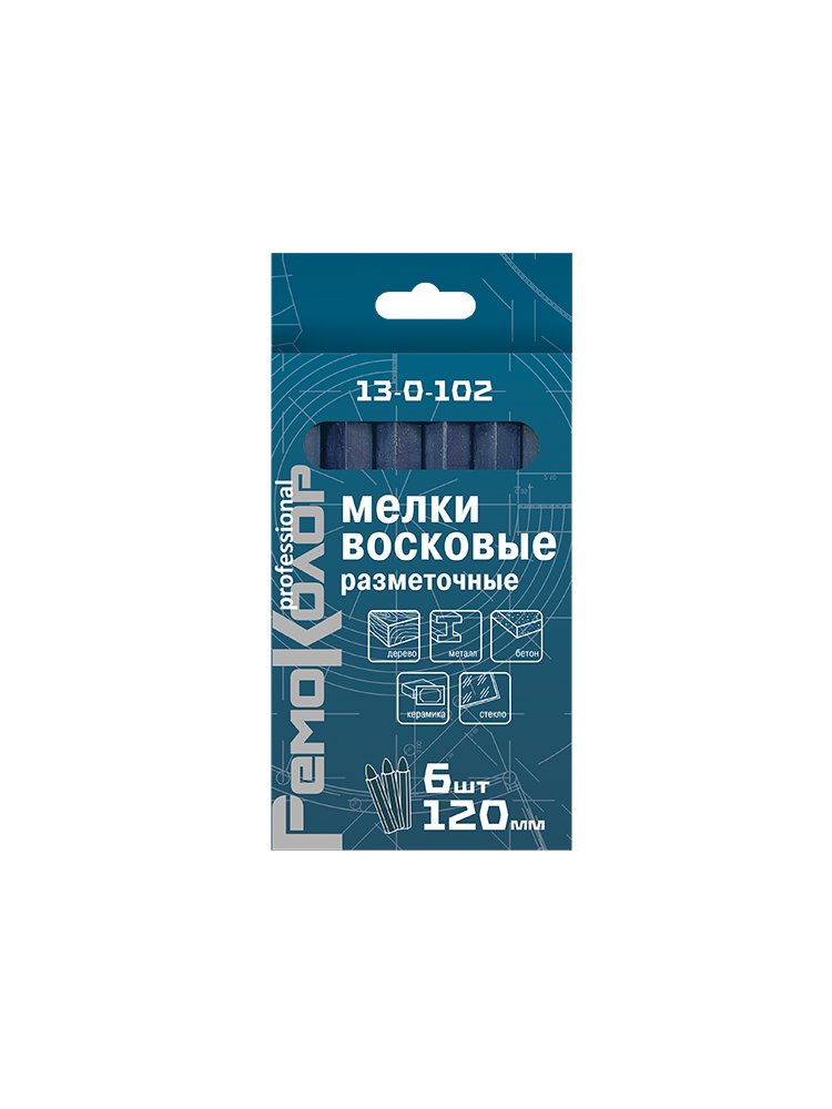 Материал: воск, пигмент. Применяются для нанесении маркировки на влажные и сухие поверхности. Подходят дла разметке на металле, бетоне, пластике, керамике и стекле. Ярко-синие восковые мелки для чёткой разметки на любых основаниях. Не пачкают руки, стойко держатся на поверхности.