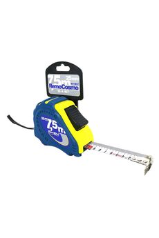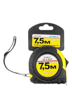 Обрезиненный пластиковый корпус, холоднокатаная лента с трехслойным покрытием (краска, шкала, лак), возвратная пружина усиленного типа. Материал изготовления: ABS-пластик, сталь, вулканизированная резина Назначение: для определения размеров линейных объектов Рулетка 7,5м, ширина 25мм, надёжный корпус, чёткая шкала и автостоп — для точных, быстрых и удобных измерений при ремонте или строительстве.