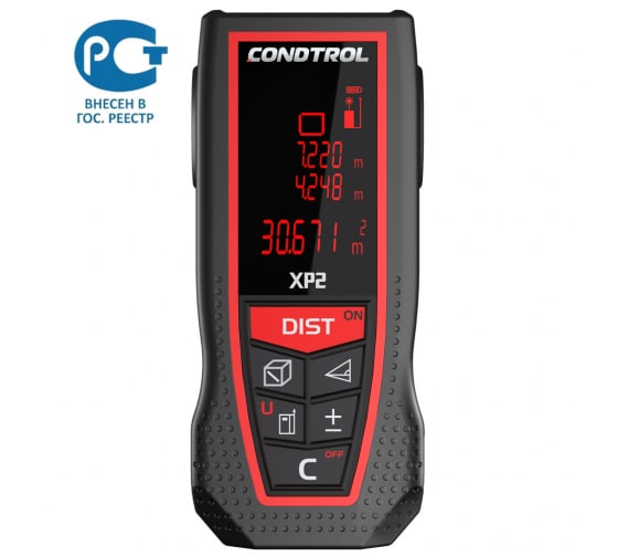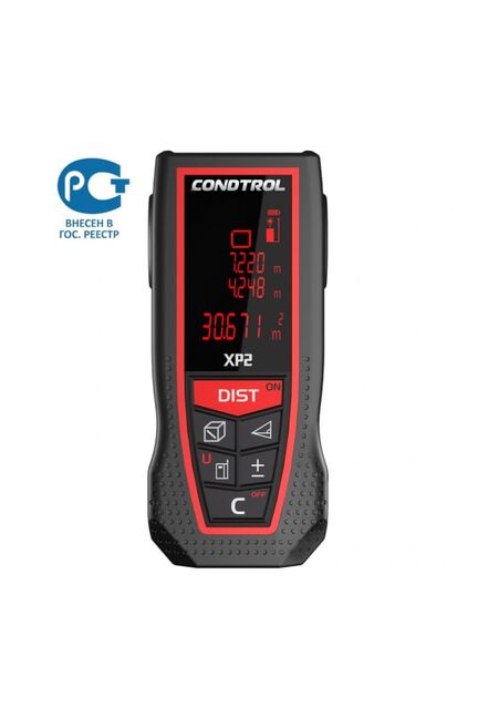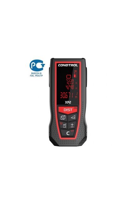 Лазерный дальномер Condtrol XP2 имеет понятный интерфейс и крупный трехстрочный дисплей с подсветкой. В режиме "трекинг" устройство постоянно измеряет дистанцию. При бездействии прибор автоматически отключается через 180 секунд, что значительно экономит заряд батарей. Благодаря крупным кнопкам, можно работать даже в перчатках. Модель имеет защиту от брызг воды и пыли IP54. Точные лазерные измерения до 70 м, быстрые вычисления площади/объёма, 20 измерений в памяти, компактность, прочный корпус для стройки.