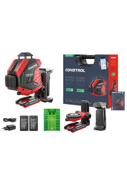 Это профессиональный расширенный комплект, включающий в себя лазерный нивелир Xliner Pento 360G, настенное крепление Wall Mount pro, крепление-зажим, магнитную мишень, аккумуляторы, руководство по эксплуатации и надежный пластиковый кейс.
