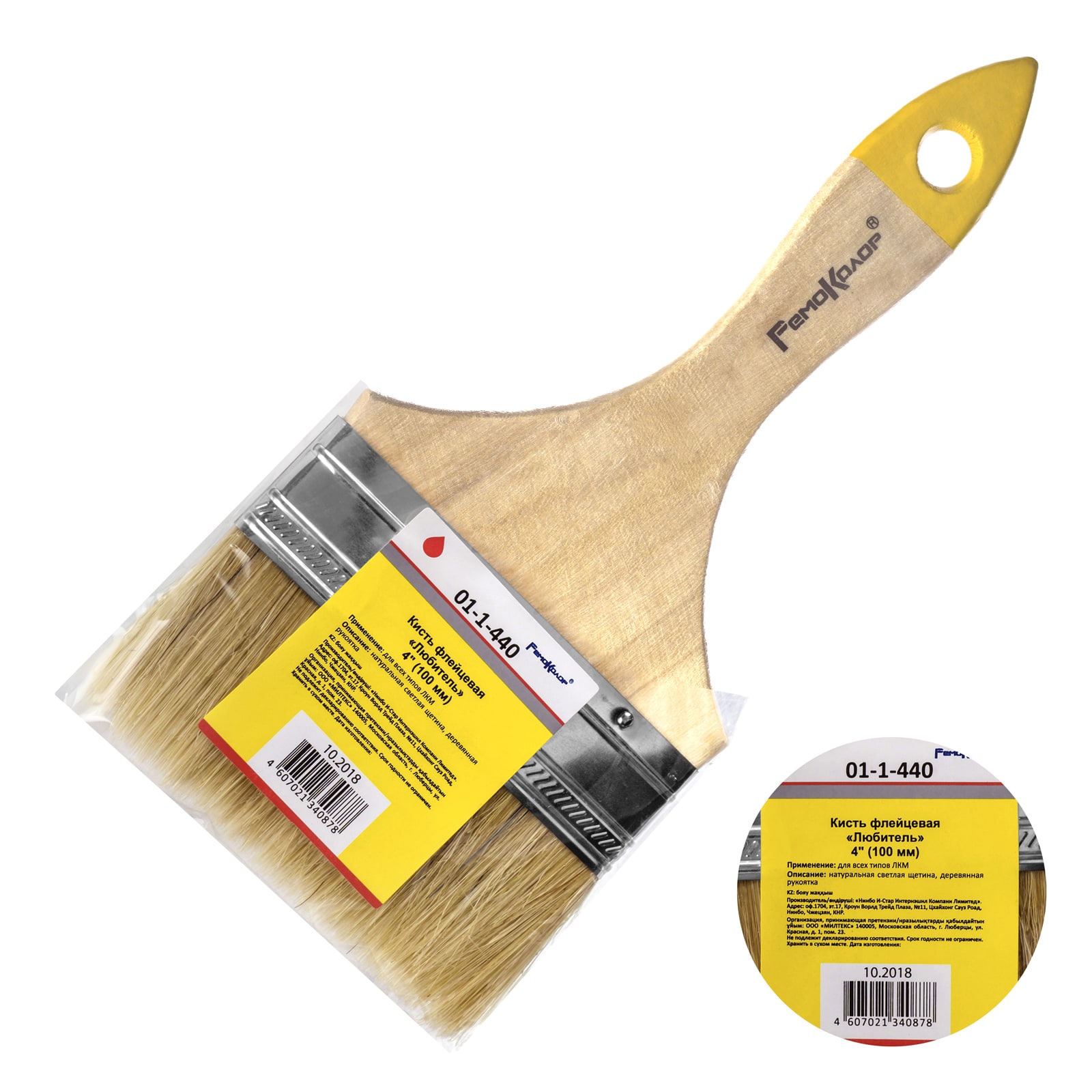 Кисть плоская РемоКолор Любитель натур.светлая щетина 101мм