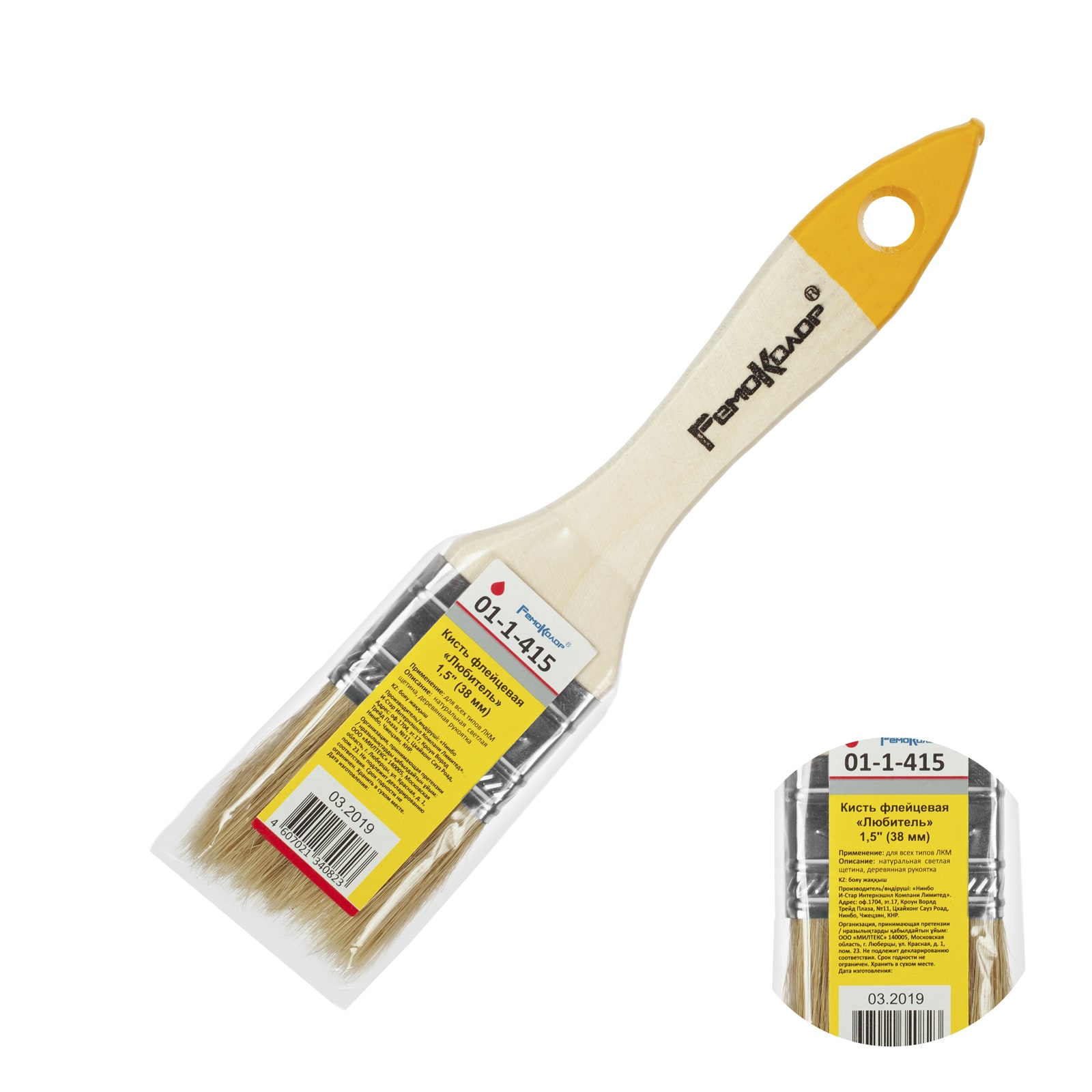 Кисть плоская РемоКолор Любитель натур.светлая щетина 38мм в Комсомольск-на-Амуре