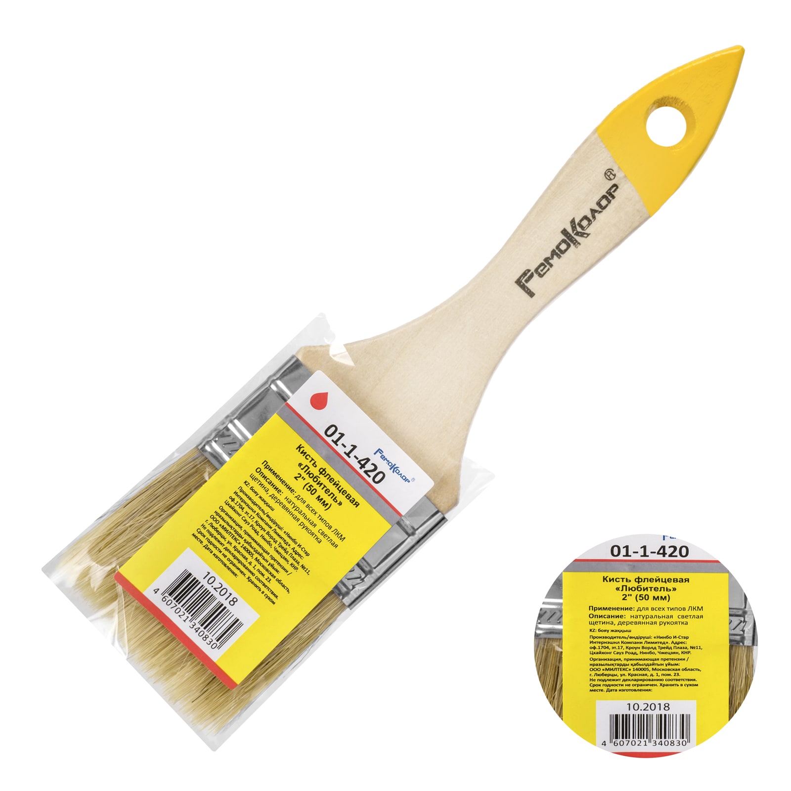 Кисть плоская РемоКолор Любитель натур.светлая щетина 50мм